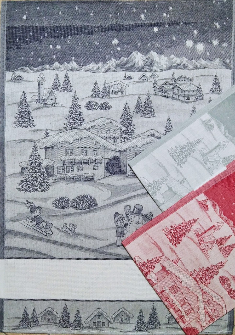 Simpatico canovaccio natalizio Villaggio , dimensioni cm 80x60 circa, in puro cotone, prodotto in Italia. var. rosso