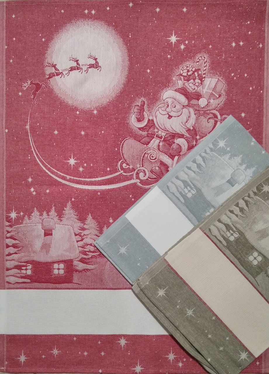 Bellissimo canovaccio Babbo Natale e due aiutanti!!!! Dimensioni cm 80x60 circa, in puro cotone, prodotto in Italia. var. rosso